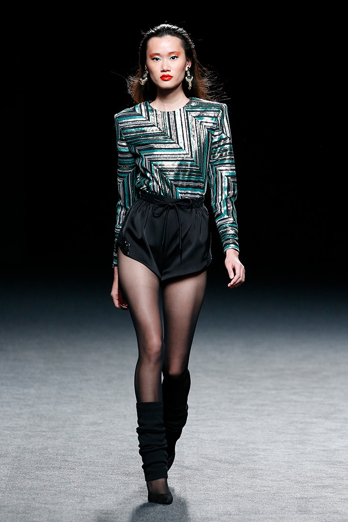 Un repaso por el momento audiovisual de los años 80 fue la inspiración de Juan Carlos Fernández y Antonio Burillo, los componentes de The 2nd Skin Co para crear la colección L'Hiver otoño-invierno 2018. Resltar la figura de las mujeres de esa época y su personalidad es lo que persiguen con tejidos que evolucionan para vestirla de la mañana a la noche sin perder una pizca de fuerza o glamour. Prueba de ellos son los minivestidos rayados de aspecto brillante, los pofundos escotes, asimétrias, volúmenes, para dar juego a las mil posibilidades que tienene stos vestidos.Entre los colores destaca el negro, que no básico, pues los brillos le añaden el toque sofisticado que se recrea en toda la coleción, pero también introducedetalles en rojo, naranja, blanco o azul brillante para reclamar la estética ochentera.